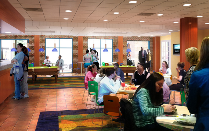 Working with Feats, Inc., interiors were redesigned to reflect the character of the surrounding geography as well as the Bucknell logo and colors.