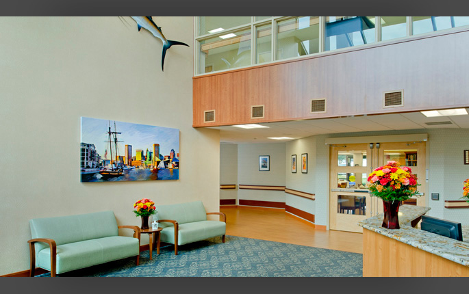 Renovate an urban waterfront facility, including lobby, dining rooms, nurses stations, corridors and resident rooms.