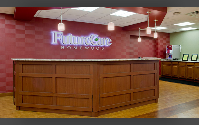 The need to refresh the lobby and offices of a long term care facility was a challenge due to its interior space without windows.