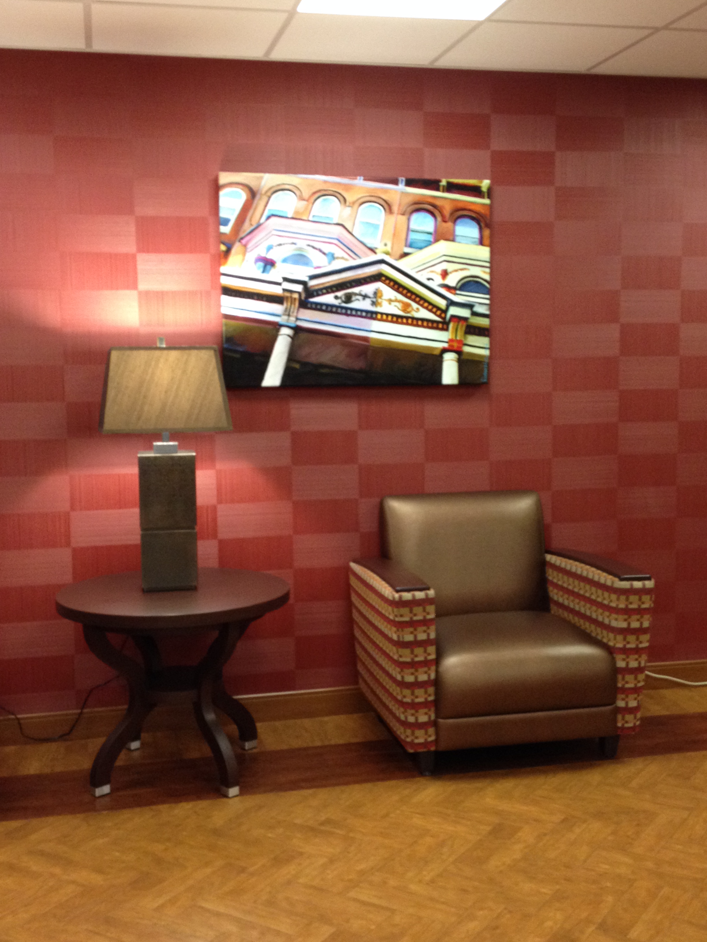 COLOR! Red accents and bold local artwork were used to enliven and welcome.
